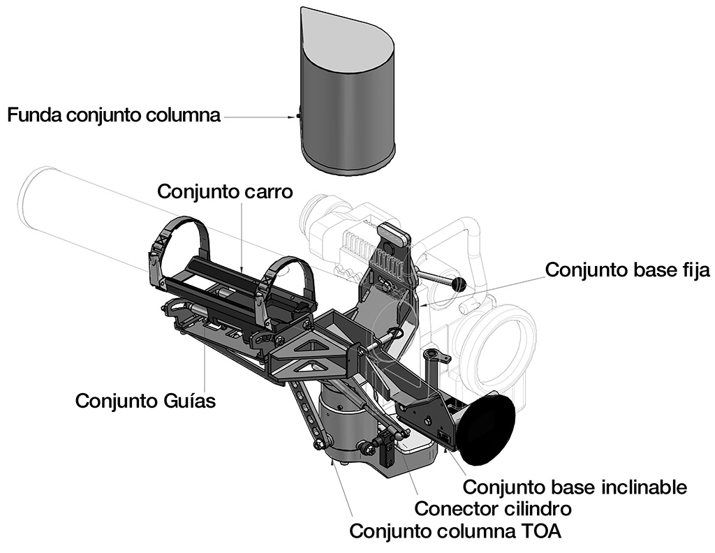 El sistema está compuesto del propio elemento de soporte (afuste) del puesto de tiro, así como todos los elementos accesorios que permiten la integración del sistema sobre el vehículo M113 especialmente configurado para este fin.